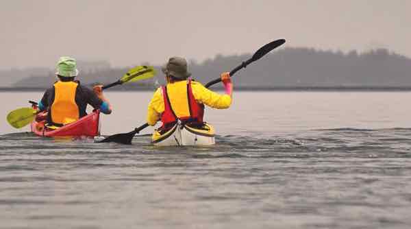 With ocean kayaking, you need to be careful with the wind, weather, and how far out you go. Beginners shouldn’t be doing this on their own. Wear a wet suit, so you remain warm in the cold ocean water.